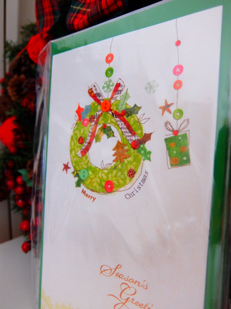 クリスマスカードは、もともとラメやボタンの飾りがついているので、3枚で気軽に作れる上に豪華な仕上がりになります。初心者にもオススメです。